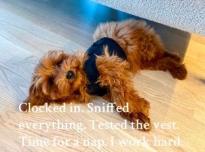 Juuhani’s first official work day at Vitals4Pets, and he took his job very seriously… starting with a full vest fitting and field test.